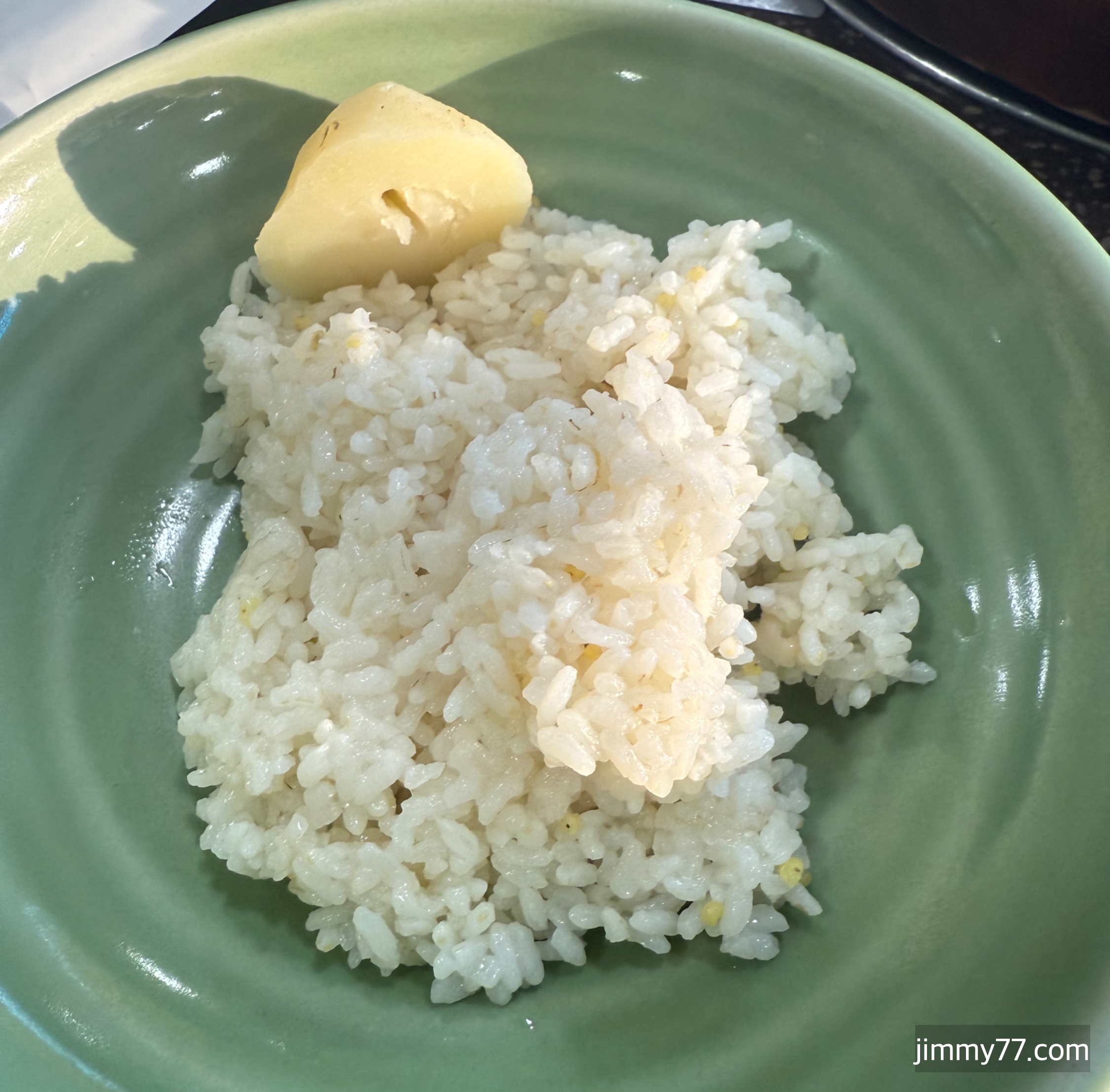 처음 나오는 밥에만 감자가 반개 들어있고요 셀프바에 밥에는 그냥 밥만 있어요 이제 식사 맛있게 했으니 숙소로 가실까요?