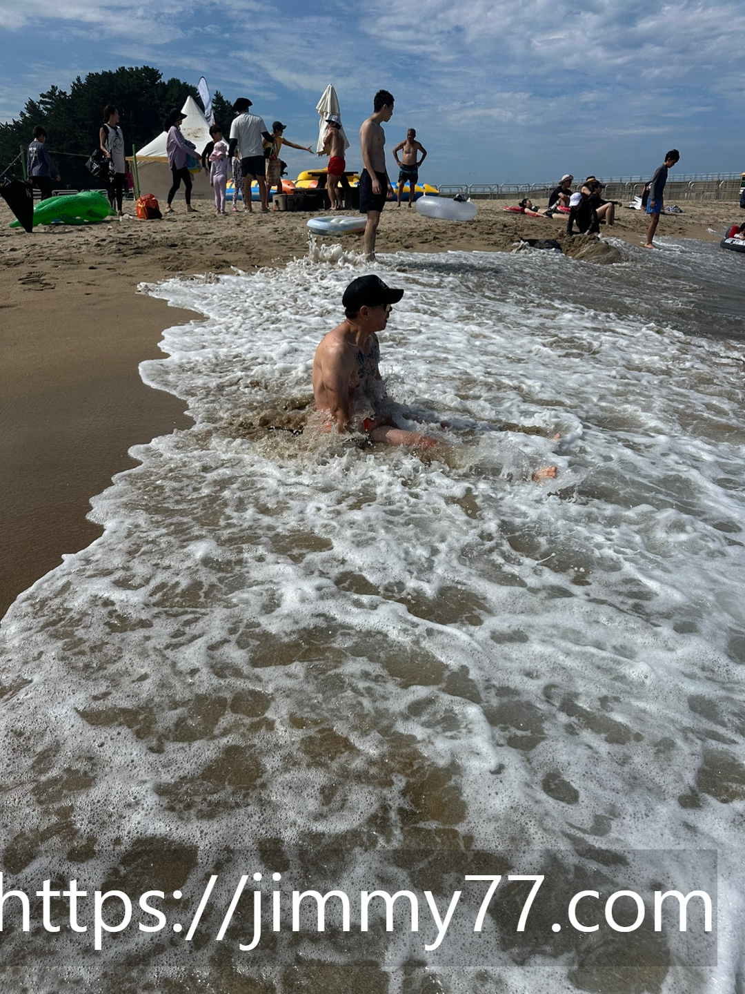 물에 못 들어가는 아쉬움으로 모래사장에서 다들 구경만 하고 있어요