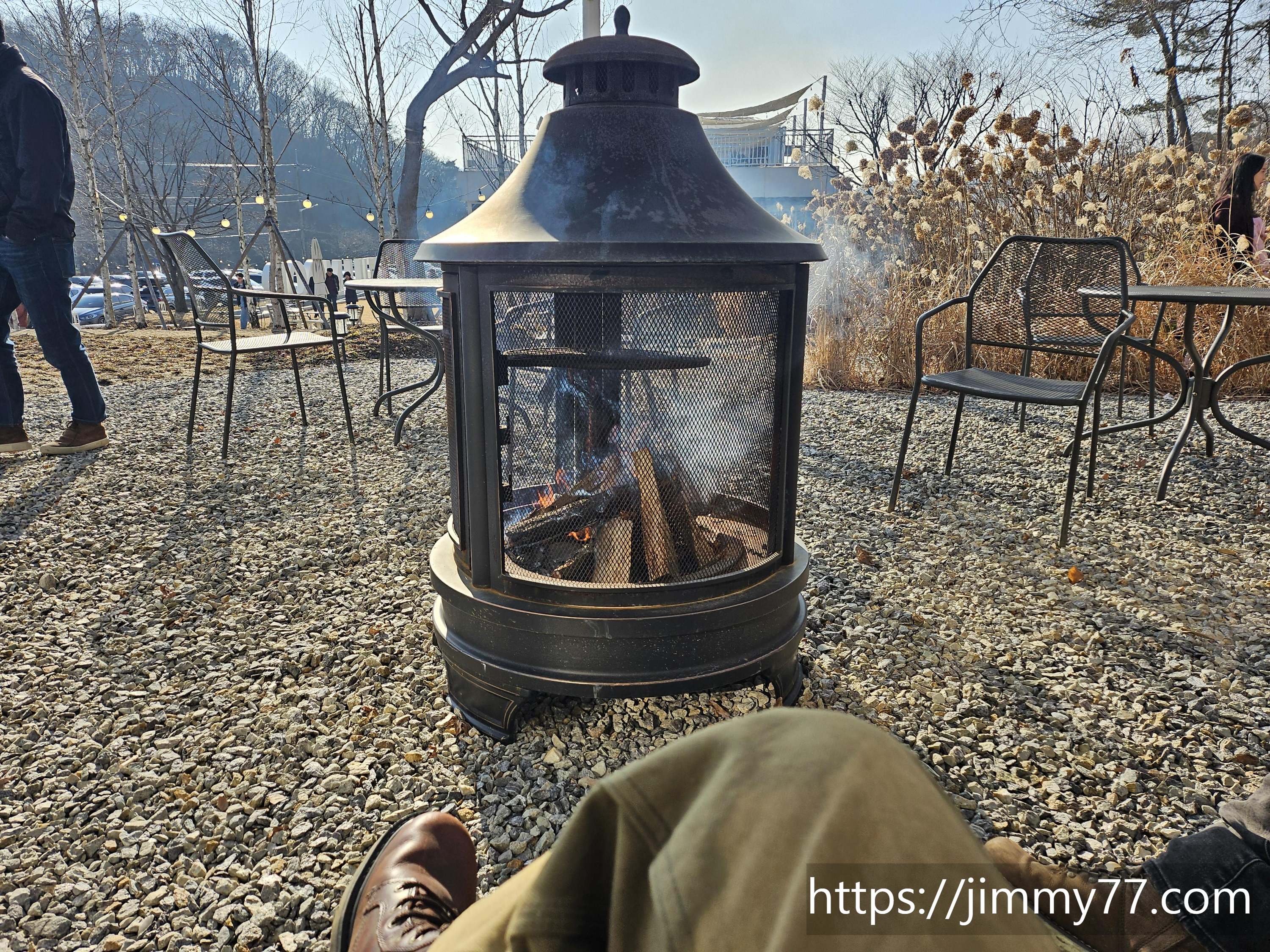 규모는 국내에서 손에 꼽힐 만큼 대형화 카페이고요 본관 내부 2층과 별관 1층 신설 하여 넉넉한 공간이에요 테라스도 넓고 겨울엔 장작을 짚일 수 있는 화로도 있어요