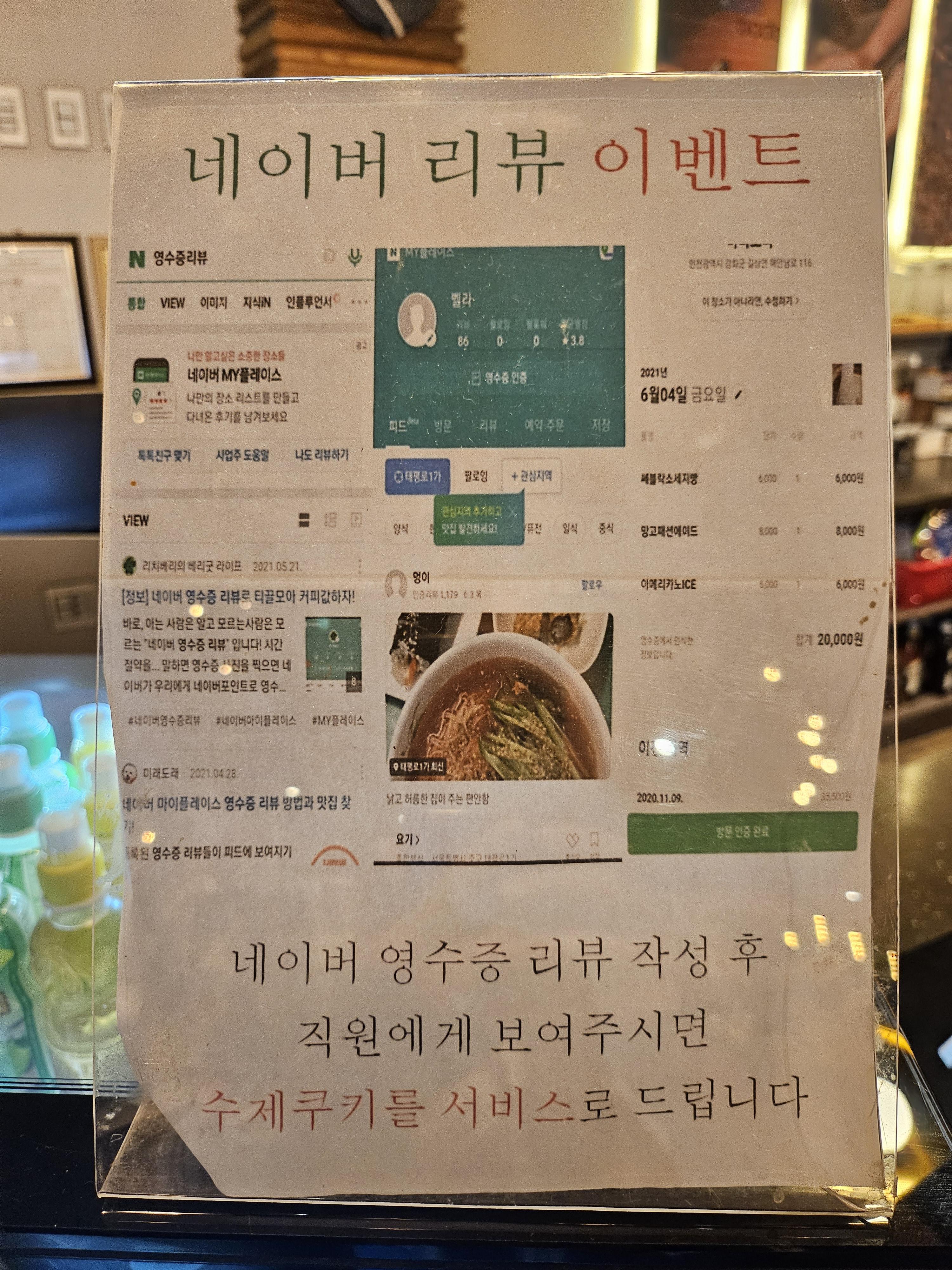 네이버 영수증 리뷰 이벤트도 진행 중이에요 미리미리 작성하셔서 수제쿠키도 받으세요^^ 포크 빨대등 기본 집기는 셀프로 카운터 뒤쪽에 준비되어 있어요